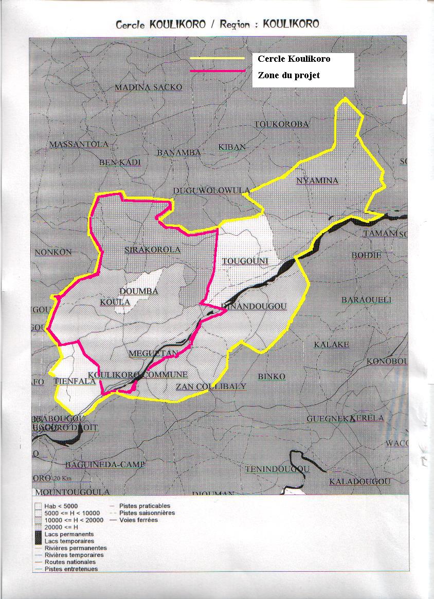 Koulikoro - carte de la zone du projet Koulikoro