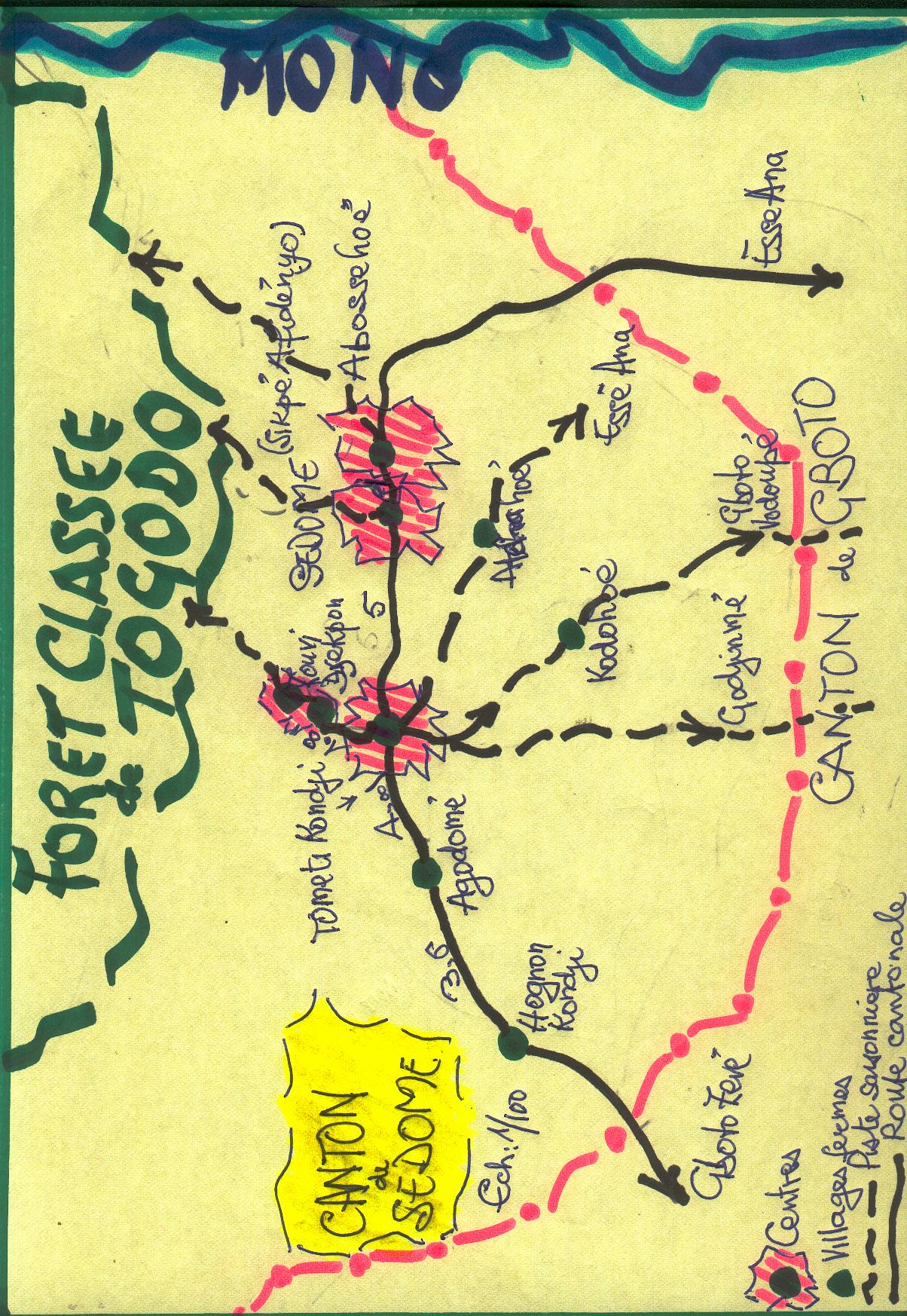 Carte du canton de Sedome (préfecture de Yoto)